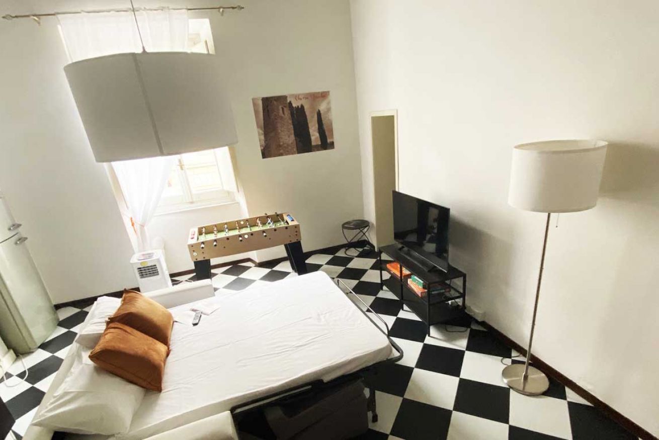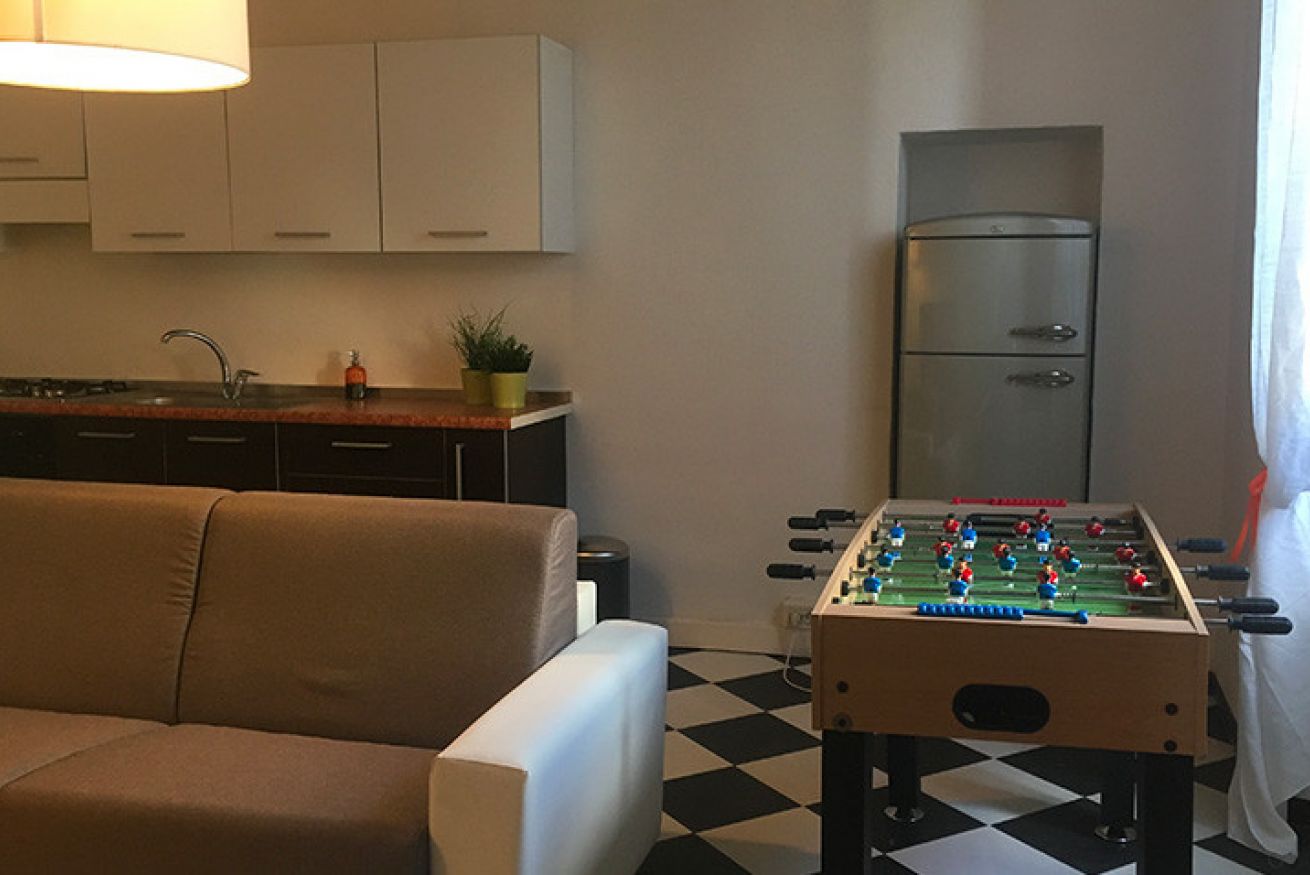 Appartamento bilocale con zona giorno cucina e divano letto, smart tv, biliardino. Camera da letto con bagno con doccia. Self check-in disponibile dalle 13:00